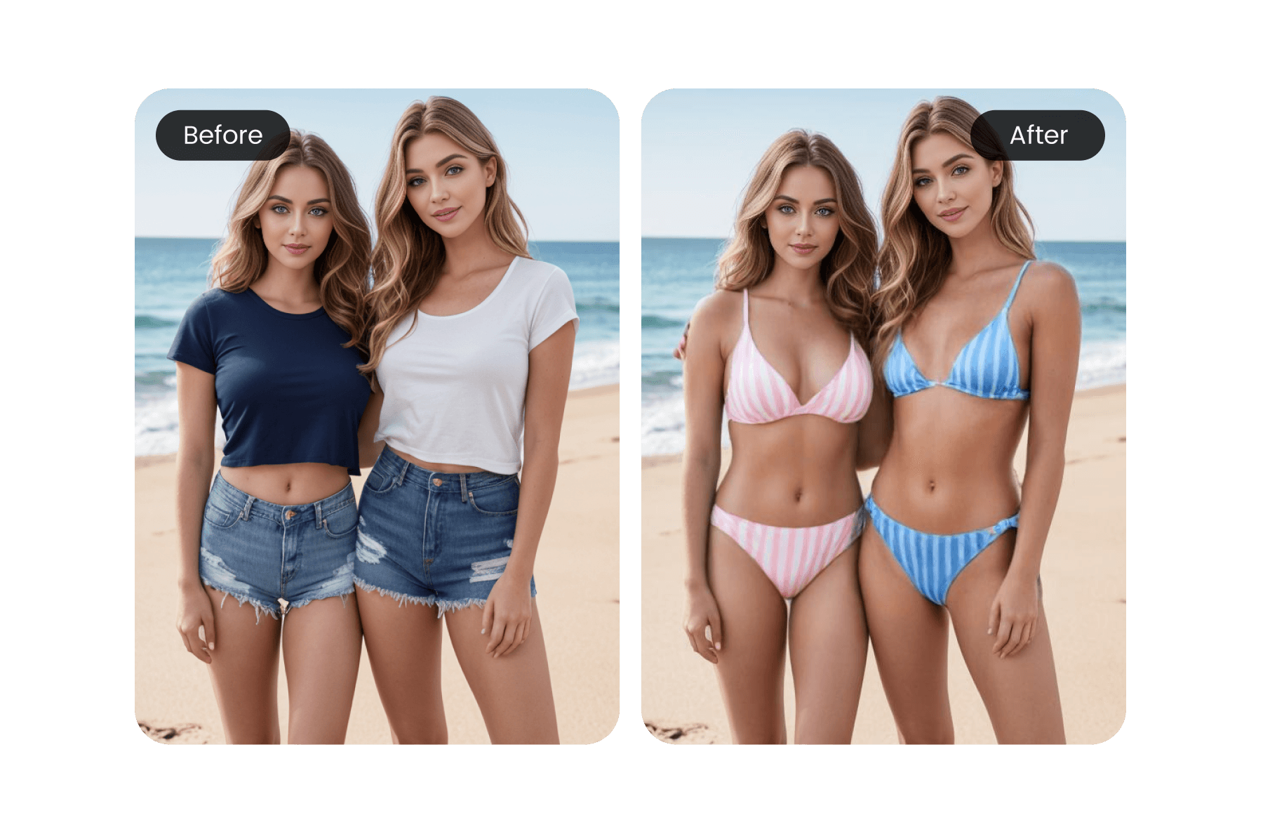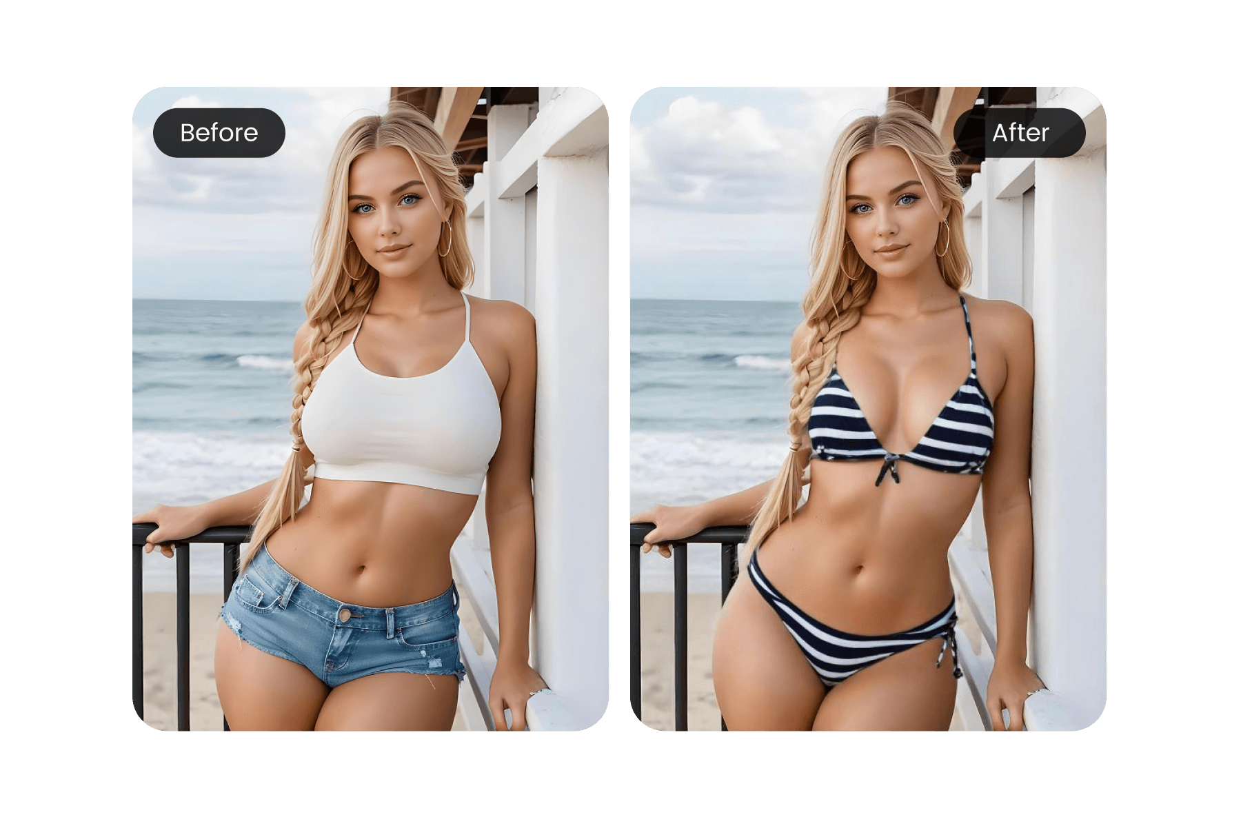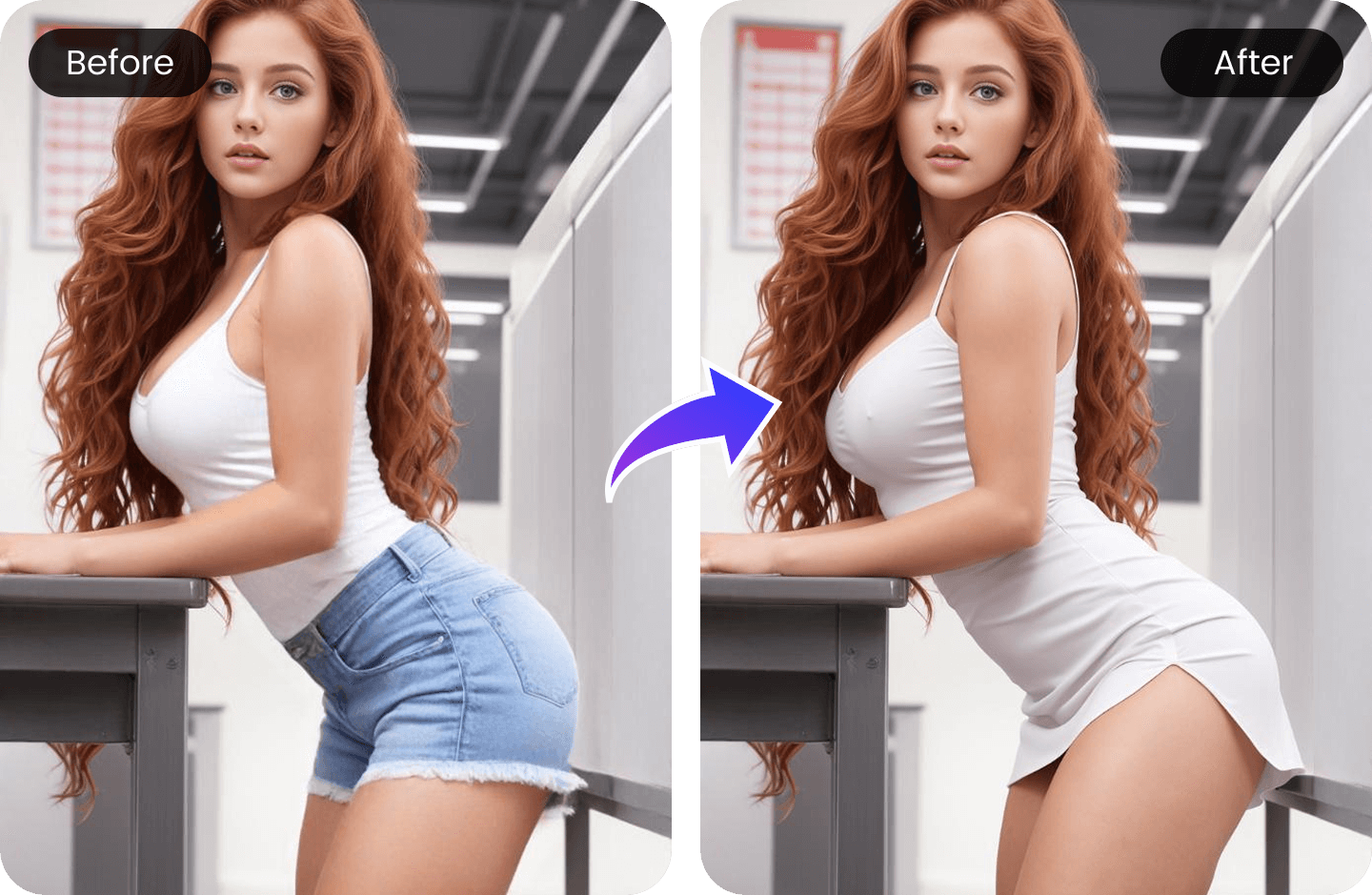 Try it nowCreating a truly convincing outfit swap or clothes removal effect is a breeze now with AI tools. These platforms let you strip away original clothes and instantly visualize new styles, textures, and fabrics right on your photo, all while maintaining a natural look. The photo-realism helps ensure the final image doesn't stand out as edited, so it's suitable even for sharing on social media or creating digital avatars. A few things stand out when you use AI for clothes removal and outfit changes: You can swap out any clothing piece in a portrait and select realistic replacements, including colors and fabrics that match the lighting of your original photo. It's fast-no need for technical skills or hours in Photoshop. Most tools work with a single click or a simple prompt. You get consistent results, which is great if you want to apply the same style changes to more than one image or person.